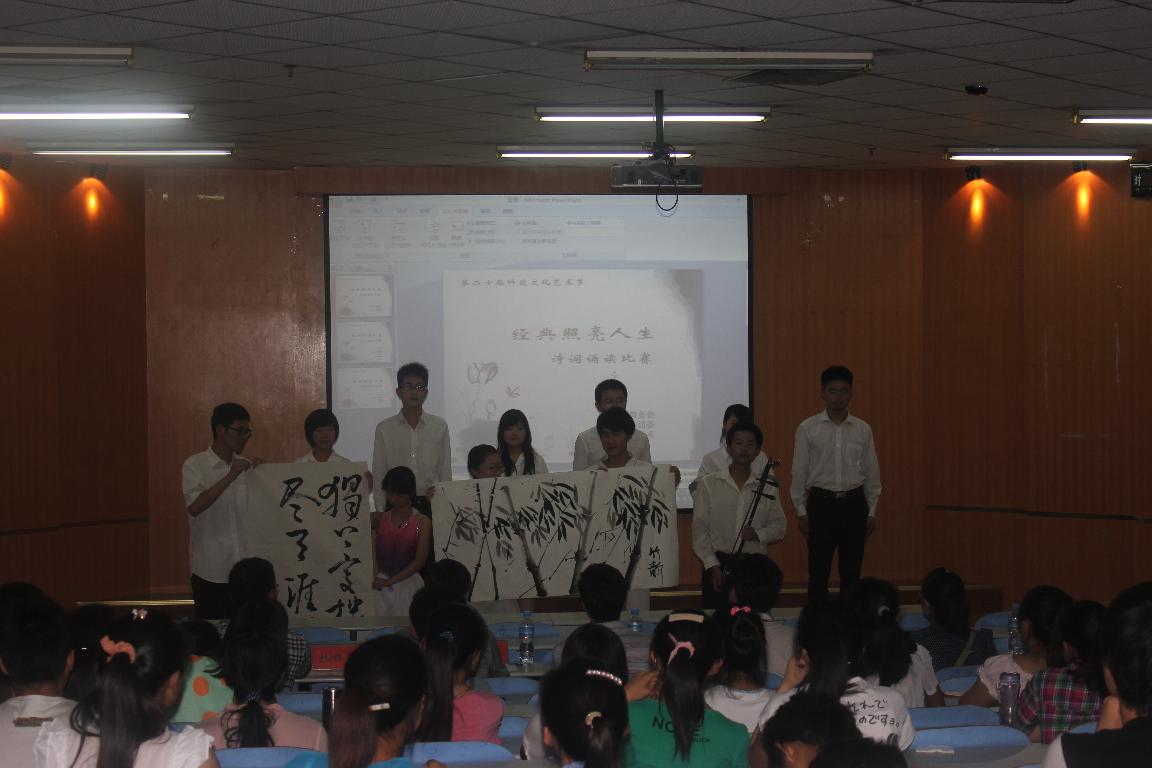 诗词诵读比赛是继诵读名家讲坛、文学沙龙之后,在全校开展的“经典照亮人生”系列活动之一。广大师生在诵读中亲近经典,不仅讴歌了革命战斗精神,还深化了对民族精神和优秀传统文化的理解,对于学生形成健全的人格、积极的审美情趣,树立正确的人生观和价值观具有深远影响。经典诗词与文化将成为促成学生人格成长、启迪人生发展的源头活水。