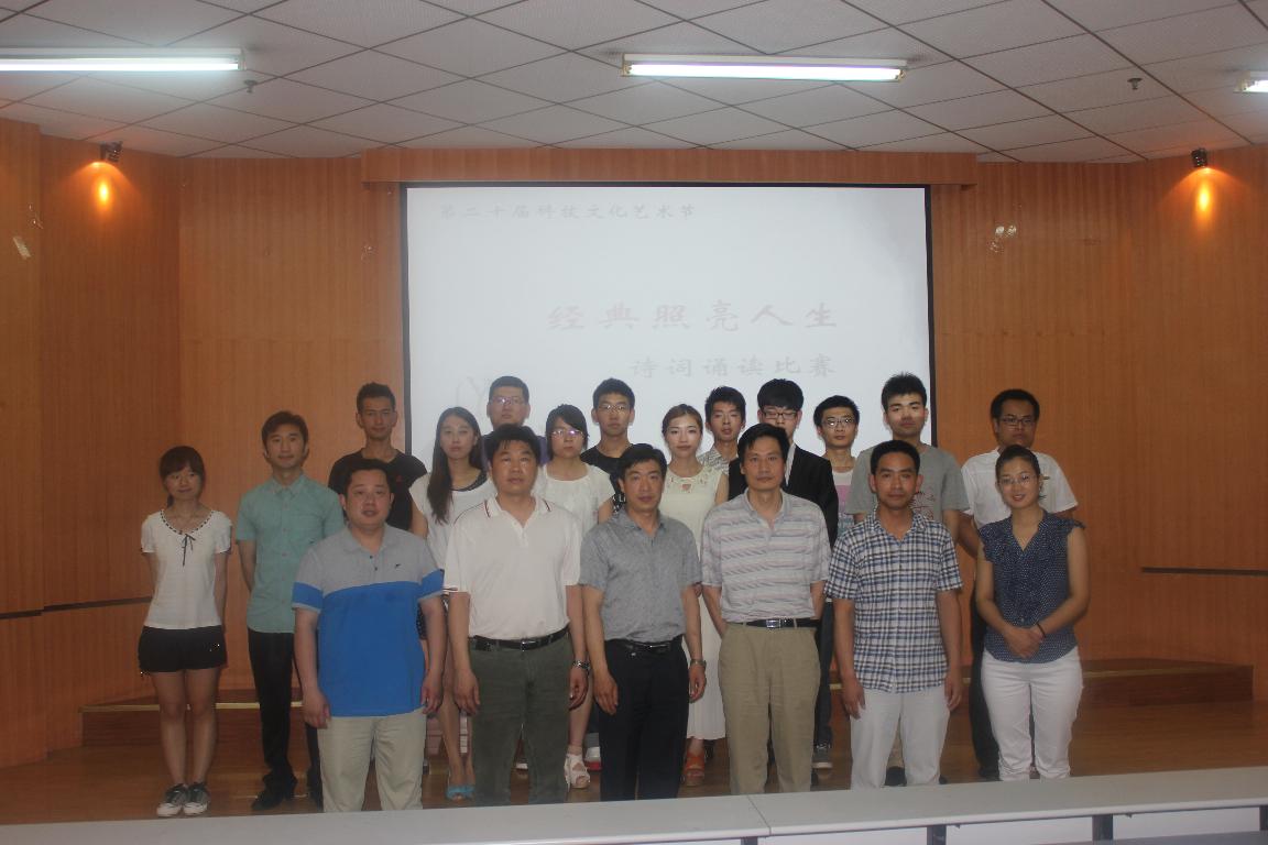卷卷书开香满溢,历历人生味无穷。5月23日,校教务处、校团委、外语系主办的第二十届科技文化艺术节之“经典照亮人生”诗词诵读大赛在教三楼103教室举行。校团委书记张世涛、教务处副处长岳永胜、外语系副主任周麦成、外语党总支副书记杜红亮及部分院系分团委书记出席活动。