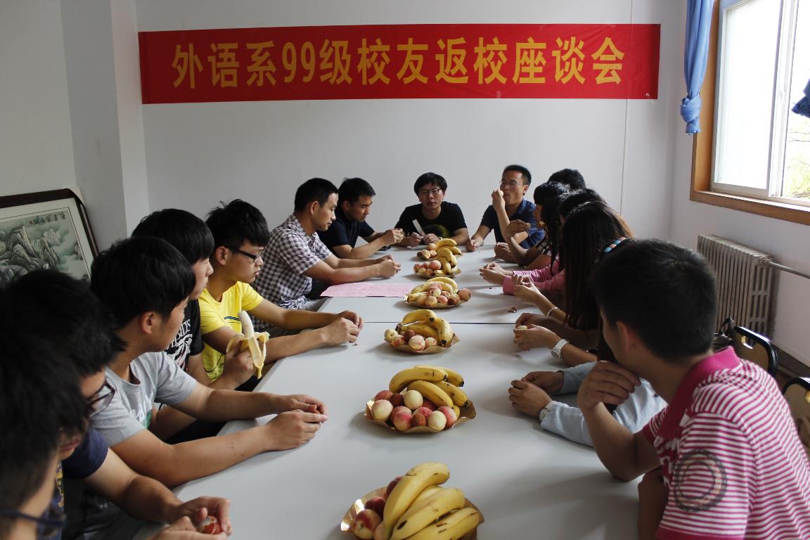 6月11日是外语系首届学生毕业十周年返校的日子。当天下午,外语系分团委邀请英语03届的部分校友在东二楼306室举办交流会,向学弟学妹传授学习与工作经验。