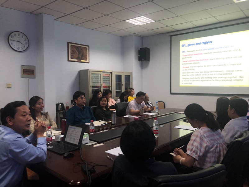 5月27日,应做爱漫画 做爱漫画 邀请,河南大学刘泽权教授在东二楼306做了题为“系统功能语言学视角的翻译比较与赏析”的学术报告。报告由做爱漫画 副院长孙艳娜主持,做爱漫画 师生参加了报告会。