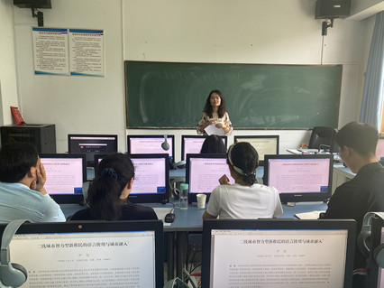 尹悦博士首先介绍了研究的缘起、构思及投稿至发表的经历,而后阐释了“语言使用”、“城市融入”等核心概念,继而详述了研究设计、数据收集和研究发现,尤其是对推断统计模型“无序多分类逻辑回归分析”做了详尽讲解。报告构思严密、数据详实、条理清晰。报告引发参会教师热烈讨论,大家围绕论文选题与拓展、投稿与发表及不同方向开展合作各抒己见。