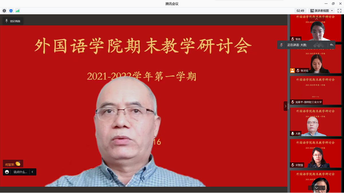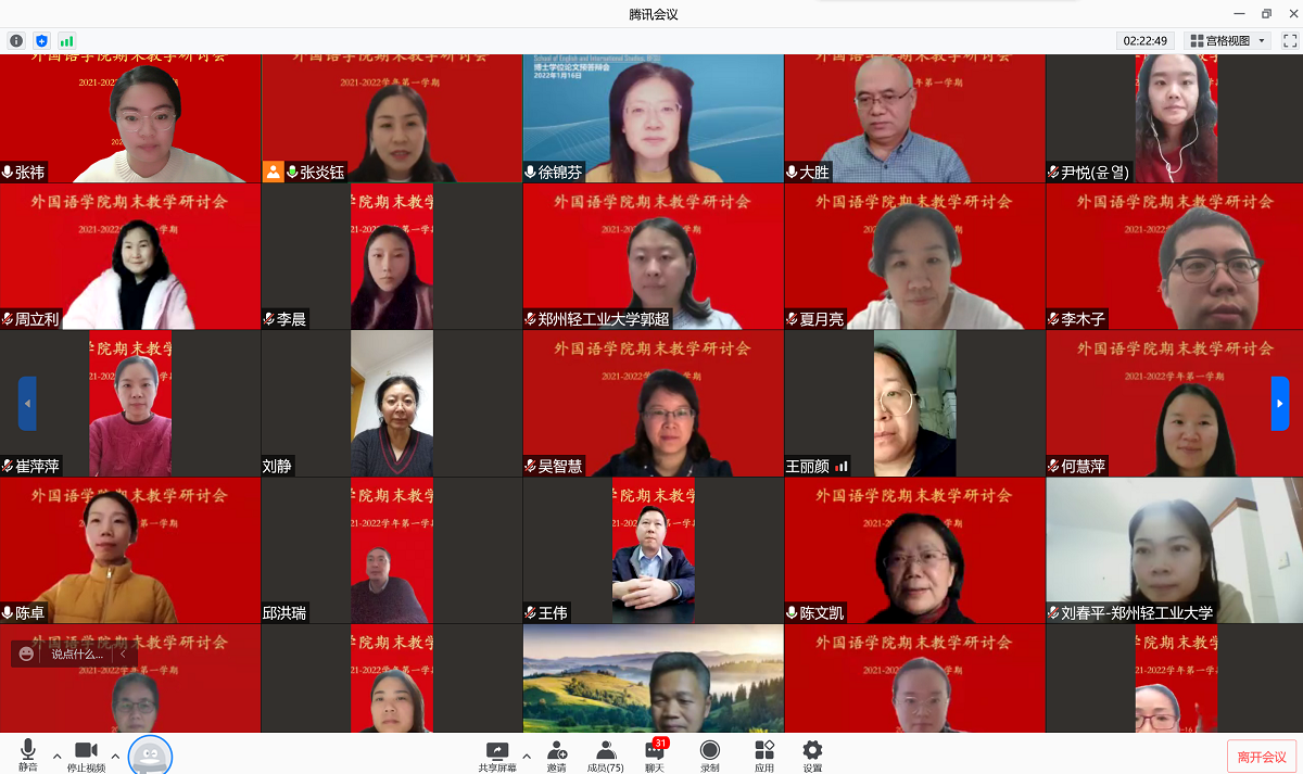 1月16日下午,做爱漫画 召开了2021-2022学年第一学期线上期末教学研讨会,主题为“教师教学能力提升与一流课程建设”,学院全体教师参加了会议,教务处孙玉胜处长莅临指导。