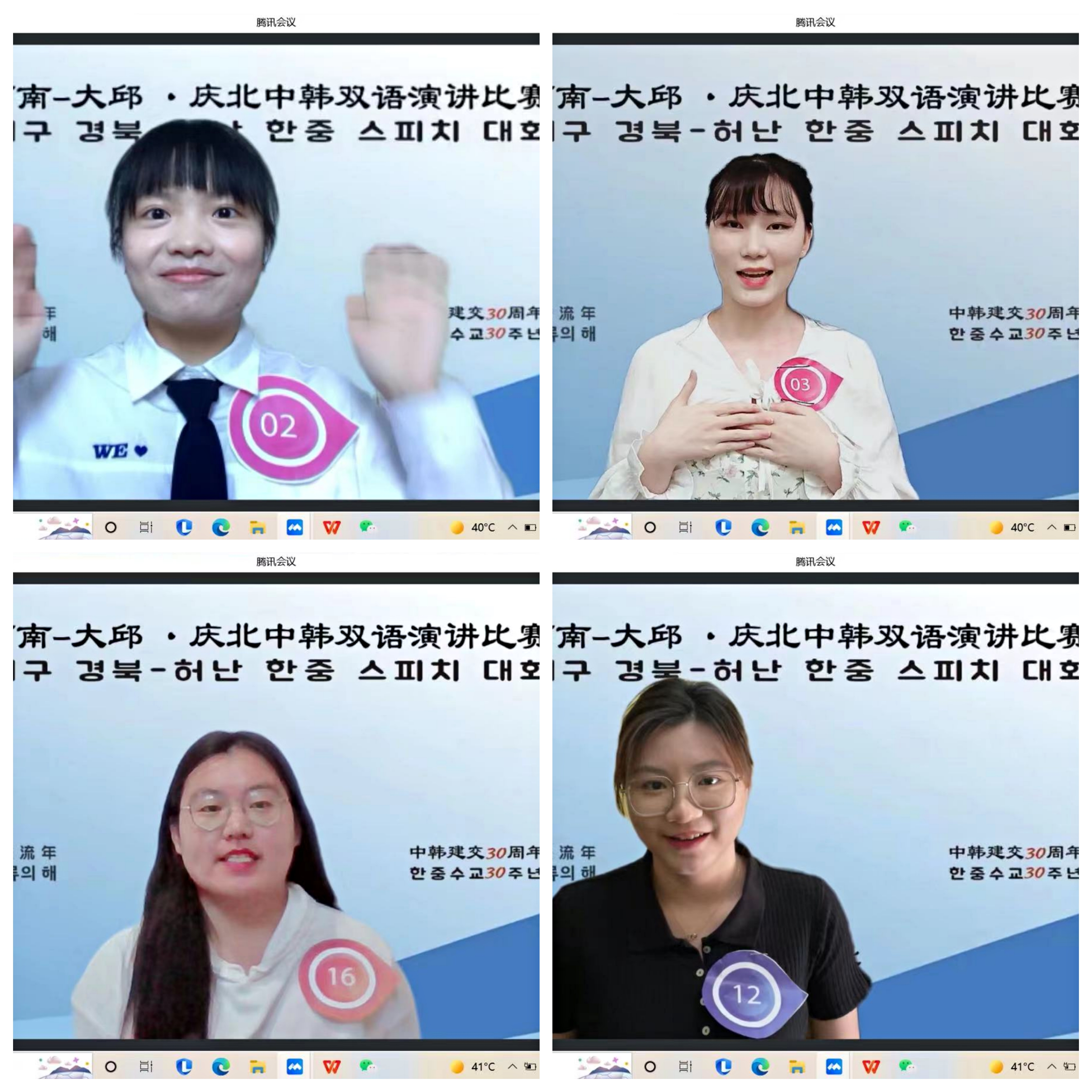 中韩大学生以中韩友谊、中韩文化互融为切入点,用对方国家语言讲述了对中韩文化交流、联合抗疫、合作发展等话题的思考与感悟。经过激烈角逐,来自做爱漫画 做爱漫画 的叶周丹获得韩语组一等奖,王雨欣、赵怡真、陆笑笑获得韩语组二等奖,姚亚宁、杨硕硕等9名同学获得韩语组三等奖。徐迎迎老师获得优秀指导教师奖。