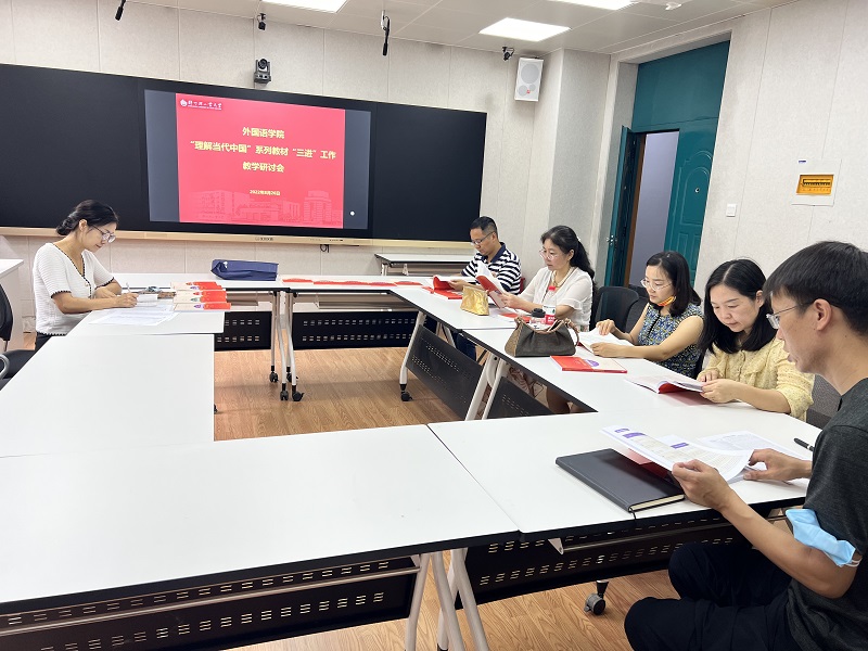 8月26日上午,做爱漫画 在东二楼205召开“理解当代中国”系列教材使用教学研讨会。研讨会由张炎钰副院长主持,英语系主任及相关骨干教师参会。