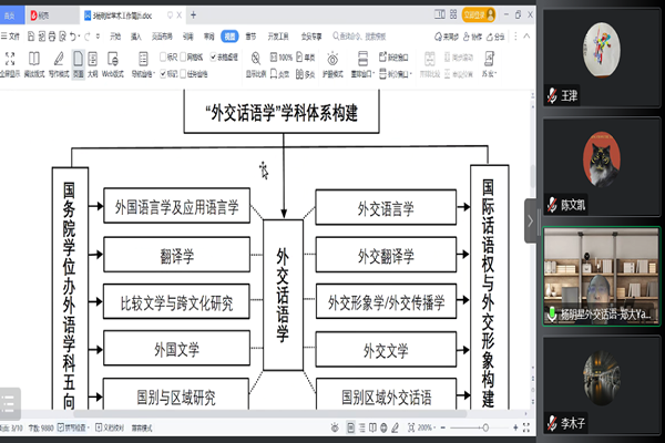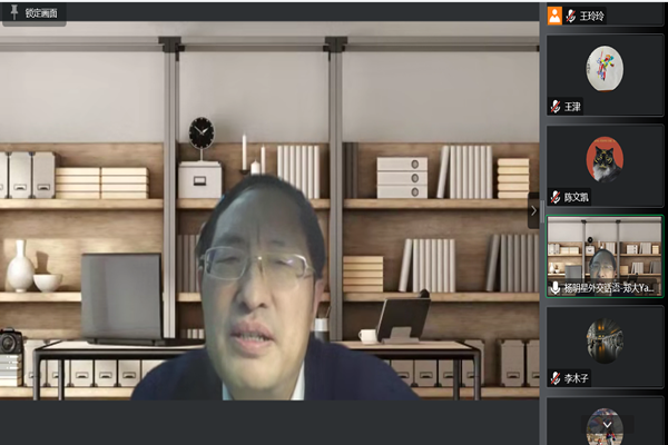 讲座结束后,杨明星教授和参会教师针对如何开展融学科研究等进行了交流。他鼓励参会教师开拓研究视角,走诸如“外交话语学”之类的跨学科、超学科和融学科发展之路,以此拓展外语学科的发展视野和生存空间。