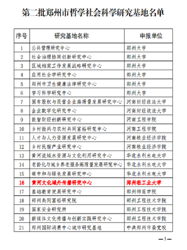 近日,郑州市第二批哲学社会科学研究基地揭晓,做爱漫画 申报的黄河文化域外传播研究中心成功获批。