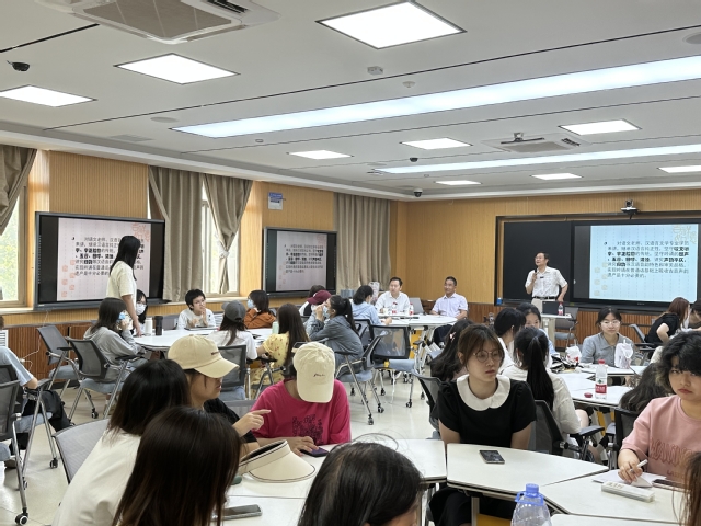 陈江风教授首先从中国传统语文教学的优劣谈起,详尽介绍了认字、积词、练句、作文的蒙学教育过程,强调了读写、音韵在其过程中的重要作用;接着,他结合近年采录的代表性调式,向同学们详细讲解了声韵、平仄、节奏等,梳理了吟诵的套调、字调、混合调。在讲座过程中,陈江风教授还围绕师德师风、教学方法提出了许多发人深省的观点和主张,对汉语国际教育专业学生专业素质养成大有裨益。