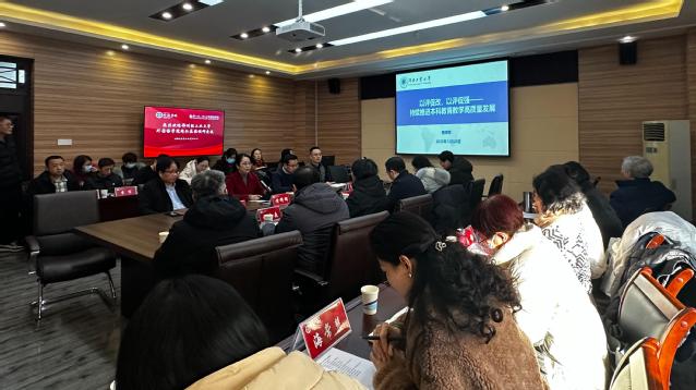 首先,王云涛书记介绍了河南工业大学审核评估工作整体情况和学院情况。随后,黄辉辉院长从新一轮审核评估背景及特点、审核评估指标体系及评估流程、学院迎评工作重点内容、评估专家考察重点及关注焦点、评估理念的转变等方面做了详细说明,并介绍了学院的经验做法。接着,双方与会人员针对审核评估自评自建工作进行了沟通交流。会后,我院一行对河南工业大学外语学院审核评估支撑材料、试卷及毕业论文归档进行了参观学习。