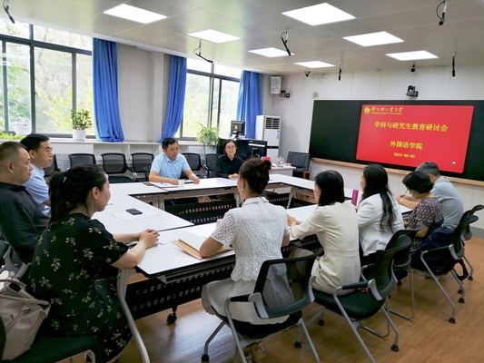 上午,在学科建设与研究生教育发展研讨会上,韩子满教授与学院班子、学科带头人及专业负责人重点围绕学科建设、研究生教育、人才培养和翻译资格考试等进行了深入交流和探讨。韩教授分享了上海外国语大学外语专业办学经验,提出通过复语制、微专业建设等促进外语专业转型发展和学科融合,培养复合型、应用型高级外语人才等建议。他还认真审阅了我院《翻译硕士专业学位培养方案》,从课程设置、语料库建设、翻译软件配套和实习基地建设等方面给出宝贵意见和建议。