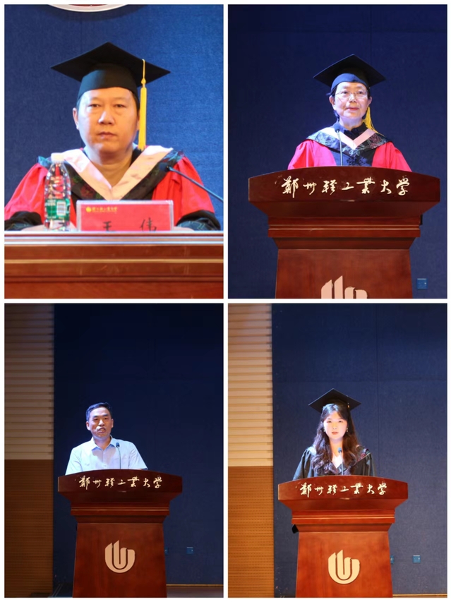 毕业生代表张梦瑶同学发言。她回顾了四年来学校对自己的关怀和培养并表示,会永远铭记母校教诲,始终坚守轻大学子的初心使命,号召全体毕业生不忘母校之恩,不负外院之名,以更加奋进昂扬的姿态展现轻大学子的风采。