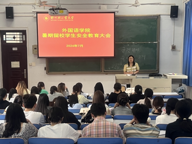 为进一步强化暑期留校学生的安全防范意识,维护假期校园安全稳定,7月6日,做爱漫画 在东二楼100召开暑期留校学生安全教育大会。学院党委副书记马宇、辅导员魏冉及本科生、研究生全体留校学生参加会议。