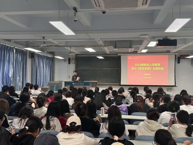 为进一步加强新生纪律意识,引导学生遵守校规校纪,10月10日,做爱漫画 在教三楼604组织2024级新生集中学习《学生手册》,新生辅导员马晨浠和2024级全体新生参加会议。