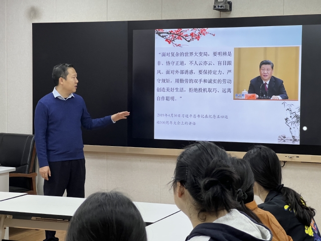 王伟首先引用2019年习近平总书记在纪念“五四”运动100周年大会上的讲话,引导青年教师和学子面对复杂的世界大变局,要明辨是非、恪守正道,不人云亦云、盲目跟风,面对外部诱惑,要保持定力、严守规矩。随后,王书记围绕“廉洁奉公”和“纯正家风”两个话题,用大量正反案例对大家进行深刻的警示教育。“公生明,廉生威”,他要求青年教师和大学生坚持公私分明,先公后私,克己奉公;坚持崇廉拒腐,清白做人,干净做事;坚持尚俭戒奢,艰苦朴素,勤俭节约;坚持吃苦在前,享受在后,甘于奉献。
