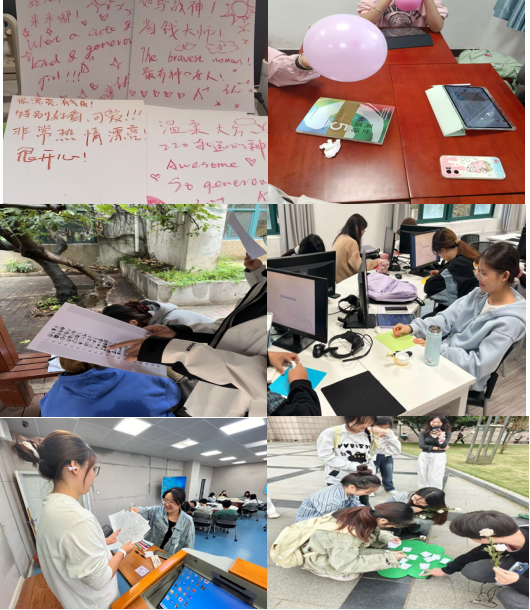 本次活动巧妙设计了“齐心协力”“我本无暇”“古韵图谜”“情绪转盘”“妙笔猜影”等趣味十足的丰富主题,为同学们构建了一个深度探索内心世界与尽情释放心灵能量的平台。这些活动相辅相成,共同编织出一幅精彩绝伦的心灵画,同学们一起进行互动游戏、尽情释放压力,分享着自己的情绪故事和应对方法,在交流中学会识别和管理情绪。