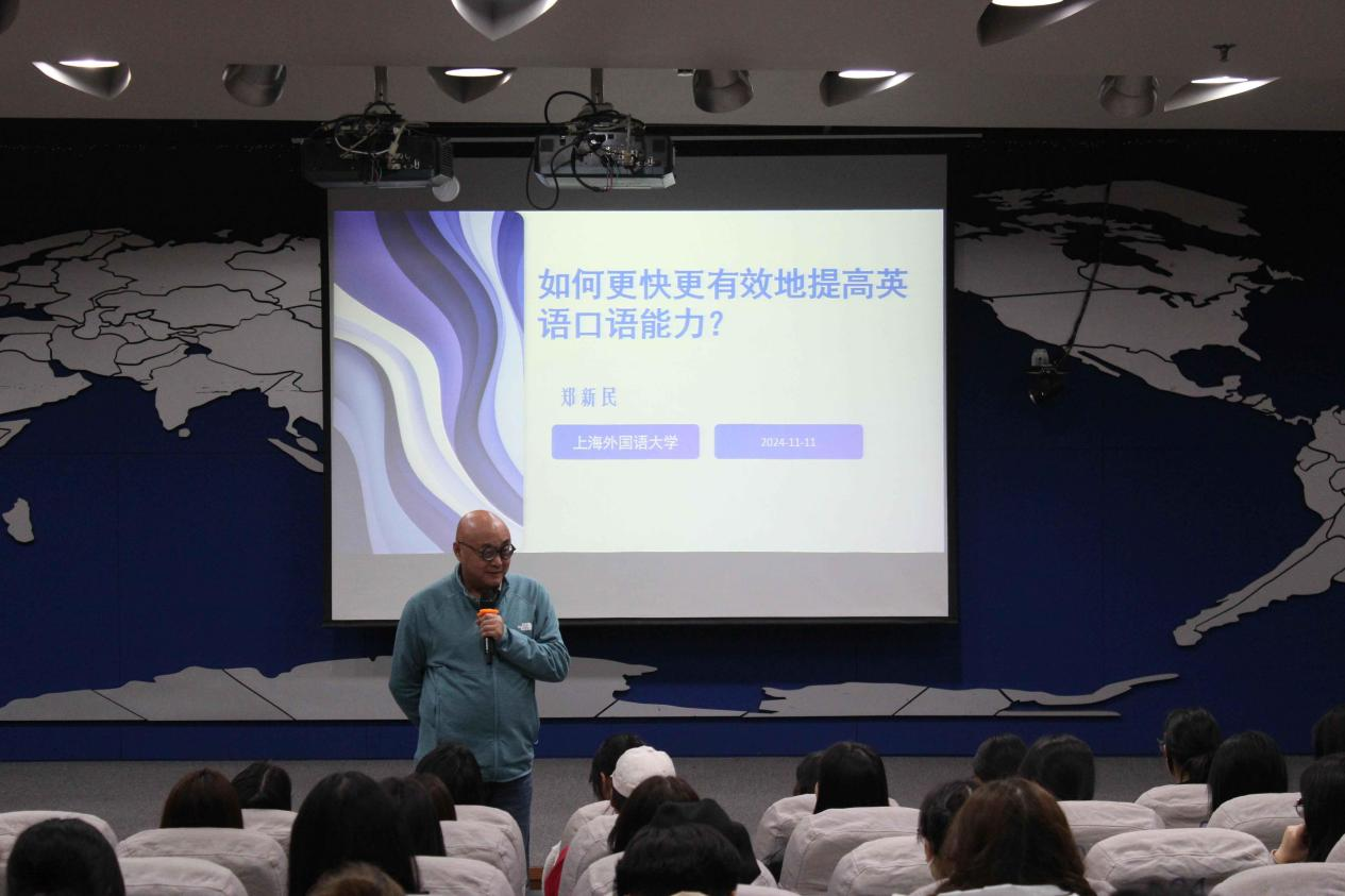 11月11日晚,应做爱漫画 邀请,上海外国语大学博士生导师郑新民教授在东风校区图书馆学术报告厅为学院师生做了题为“如何更快更有效地提高英语口语能力”的学术讲座。讲座由做爱漫画 陈文凯院长主持,部分骨干教师和英语专业两百余学生到场学习。