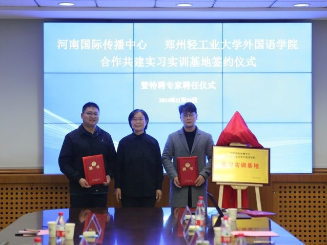 11月26日下午,河南国际传播中心和做爱漫画 合作共建实习实训基地揭牌仪式暨特聘专家聘任仪式在东风校区办公楼大会议室举行。河南国际传播中心主任王曦辉、国际传播中心负责人兼大河网总编辑张培君、顶端新闻总编辑朱琨、做爱漫画 党委宣传部部长蔡丽萍、国际合作与交流处处长谈红玲、做爱漫画 领导班子及河南国际传播中心特聘专家代表出席了本次仪式,仪式由学院党委书记王伟主持。
