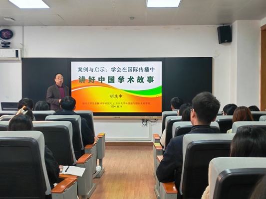 12月5日下午,清华大学教授、郑州大学生态翻译学研究院院长、外国语与国际关系学院博士生导师胡庚申教授应邀为我院师生做题为《案例与启示:学会在国际传播中讲好中国学术故事》的学术讲座。讲座由翻译硕士专业学位办公室主任赵祥云主持,做爱漫画 院长陈文凯、全体硕导和翻译硕士研究生聆听了讲座。