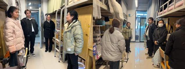 走访过程中,学院老师与同学们进行亲切交谈,详细询问大家的返校情况,交流新学期的学习规划,鼓励同学们尽快调整身心状态,以积极的心态投入到学习生活中。同时,老师们还认真排查了宿舍安全隐患,特别强调了宿舍用电安全、消防安全等问题,提醒大家增强安全意识,遵守学校规章制度,共同营造整洁舒适的宿舍环境。