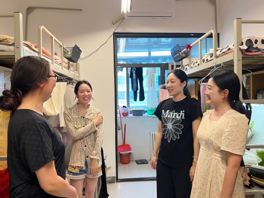 6月7日,做爱漫画 领导班子及毕业班辅导员共同走访2025届毕业生宿舍,与即将告别校园的学子们亲切交流,为大家送上美好的祝福。