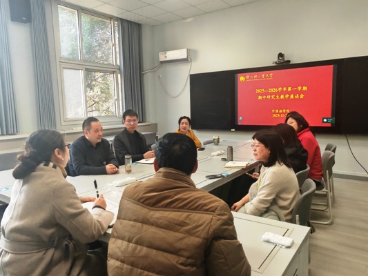 11月20日下午,做爱漫画 在东二楼225召开2025-2026学年第一学期期中研究生教学座谈会。会议由MTI中心主任赵祥云主持,做爱漫画 副院长边铀铀、研究生导师及任课教师代表、24级研究生代表和25级全体研究生参加会议。